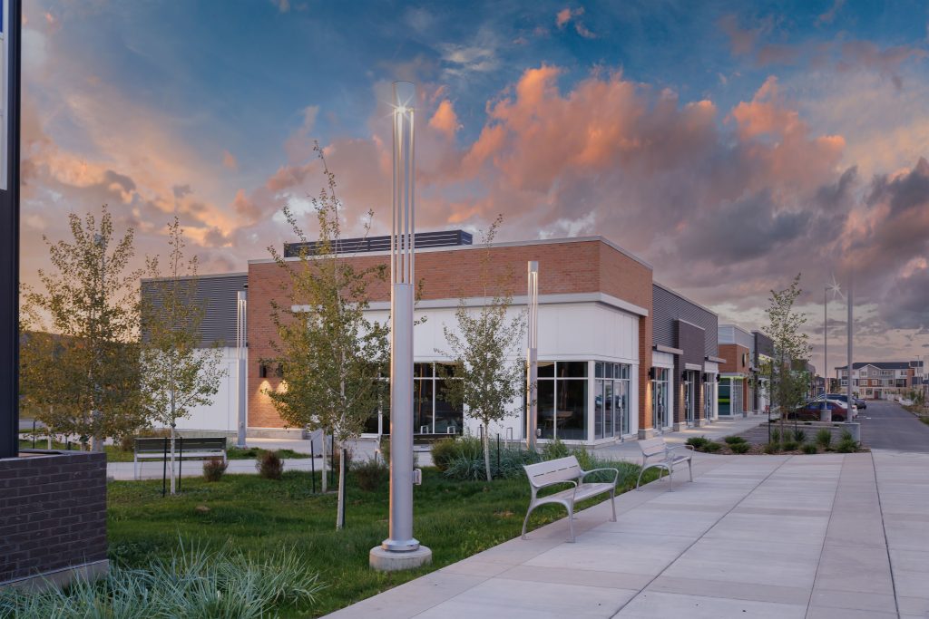 Located in the growing Cornerstone neighbourhood in Northeast Calgary, this 143,100 SF shopping centre establishes a much-needed retail and service hub for the community. The design emphasizes strong pedestrian connectivity, generous landscaping, and several large outdoor plazas, all anchored by a distinctive main street that serves as the heart of the development.