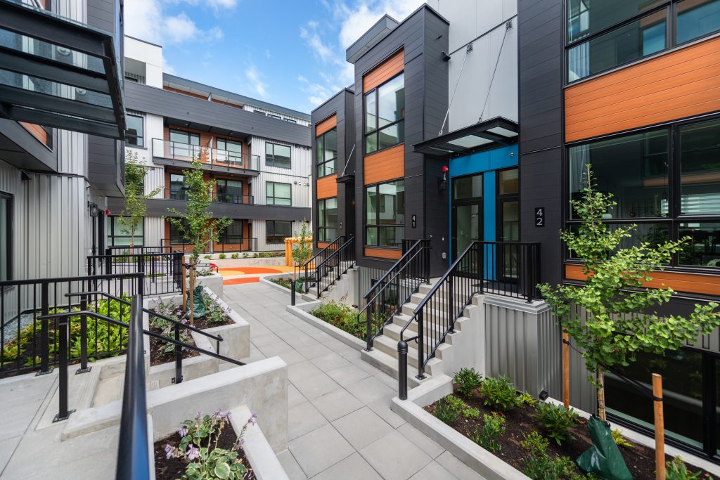 This award-winning, 100% purpose-built rental project is located on Vancouver’s East Side and features 68 high-quality townhouse and apartment homes. Developed as part of the City of Vancouver’s Affordable Housing Initiative, it provides cost-effective, long-term rental housing for the community.