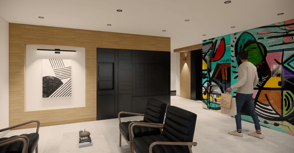 The main design feature is an eye catching mural designed by local artists that floods from the exterior facade into the building’s lobby.