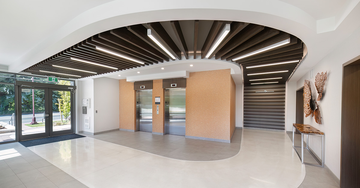 The Monarch is a multi-family rental building comprised of 71 units located on Goldstream Avenue in Langford. The primary design element, a curved floor & ceiling detail, was introduced to help visually occupy space and create a sense of flow throughout the public areas.