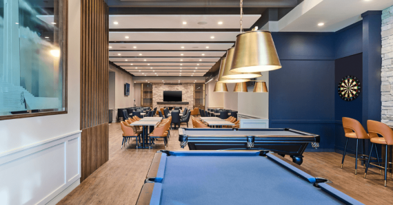 Located in Surrey, this project is a 193-unit market housing development comprised of two buildings, for which WA Architects was also the architect. The most distinctive interior design element is the buildings’ vibrant colour scheme. In the lobbies, this distinguishing feature is found in the brightly painted ceiling element which draws your eye towards the elevator. This striking colour detail, together with a warm wood-look wall tile and LED lighting, is repeated throughout. This not only creates a sense of interest and cohesion but also acts as a creative wayfinding method for the building’s occupants. WA Architects also led the architectural design, explore our approach here.