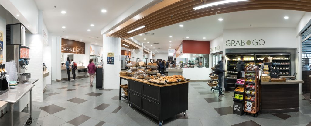 This is a renovation to the existing UBC Totem Dining Hall food court and a portion of the dining area to create a more cohesive look, improve traffic flow, and to incorporate the new communications strategy through design.